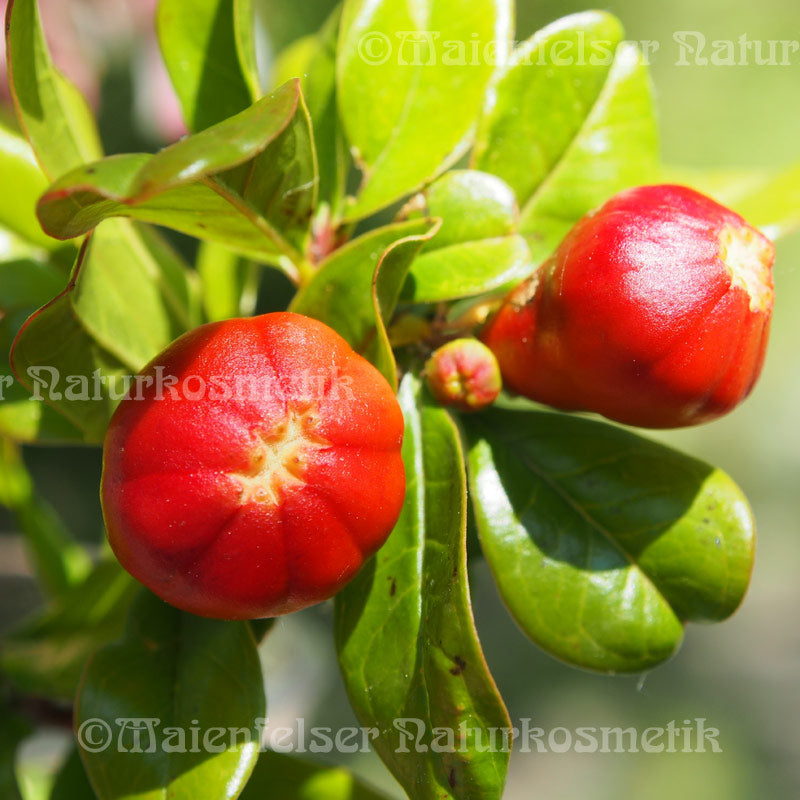 Der Granatapfelbaum kommt ursprünglich vor allem im südwestlichen Asien von der Türkei über den Iran, Syrien bis nach Indien vor. Heute sieht man ihn auch rund ums Mittelmeer. Die rote Frucht des Granatapfels beinhaltet zahlreiche erbsengrosse Samen mit roter Aussenschicht, die entweder kaltgepresst oder in CO2-Extraktion ein sehr wertvolles Öl ergeben. Das hellgelbe Öl hat einen lieblichen, leicht süßen Duft. Durch den hohen Anteil einer ungewöhnlich seltenen Ölsäure - der Pumicinsäure, die zu den mehrfach ungesättigten Fettsäuren (Omega 5) gezählt wird - zeigt das Granatapfelkernöl eine starke antioxidative Eigenschaft.